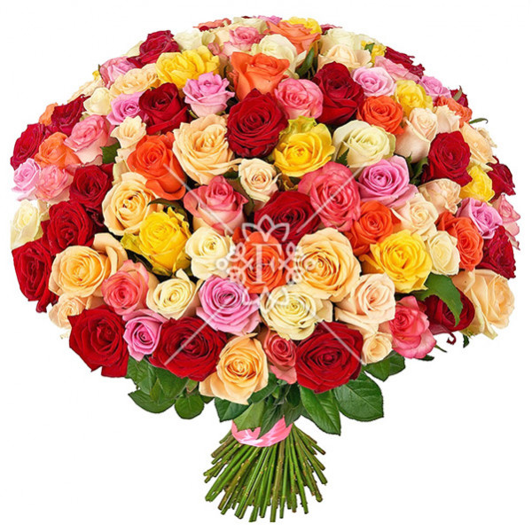 Классические розы очаровывают безупречностью и сладостью аромата! Каждый лепесток – признание! Каждый бутон – восторг! Букет «101 комплимент для тебя»  создан для того, чтобы покорить женское сердце! Разноцветные розы выглядят превосходно, вся композиция привлекательна и нежна!
